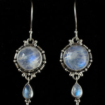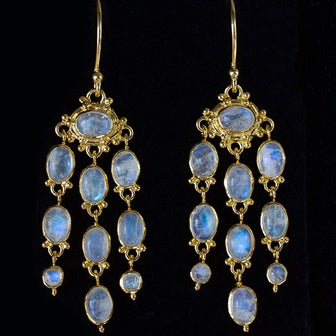 "Arrived SUPER quickly! Love the quality and the rainbow hues of the moonstones (trust me, I have bought lots of jewelry and moonstones before and some don’t have the blue hues as these do!). The earrings are also comfortable and they do have movements so they dangle nicely. Highly recommend!" -Natalie