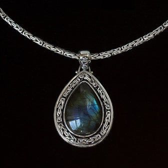"Omg!!! I have no words for how beautiful this necklace is!! I am definitely in love! I honestly wasn’t so sure about buying labradorite online just because it’s difficult to see how it flashes on pictures but Pamela provides the best customer service... You can tell she loves what she does! And I love it!! High quality necklace for sure!! I feel like Princess Jasmine with this beautiful necklace." -Aurora